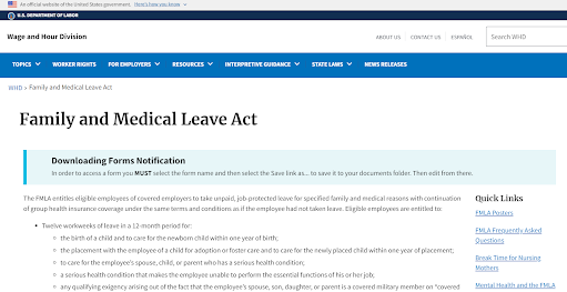 In the US, the Family and Medical Leave Act (FMLA) gives employees the right to take unpaid leave for certain family and medical reasons without losing their job. Explain who qualifies for it and what it covers.